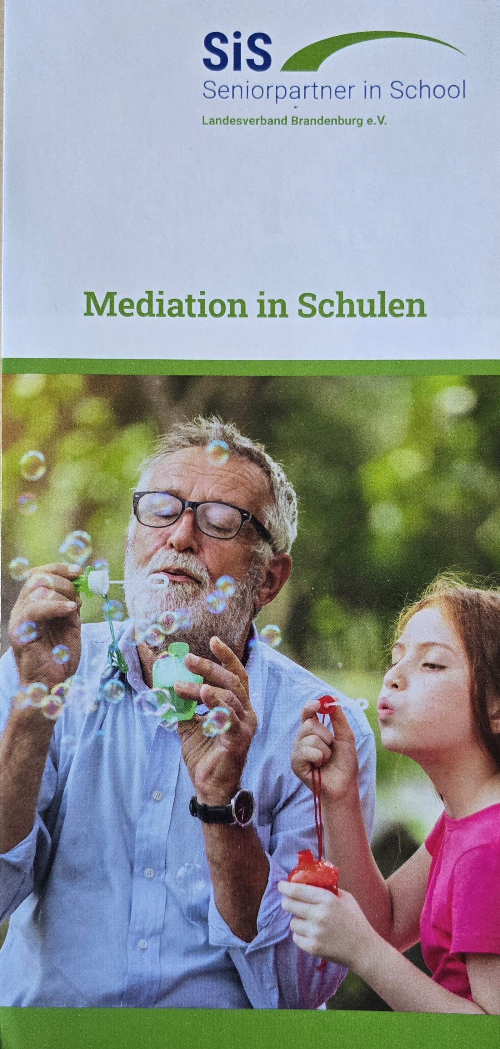 Seniorpartner in School Landesverband Brandenburg e.V. (SiS) ist ein gemeinnütziger Verein, der sich zum Ziel gesetzt hat, eine Brücke der Begegnung zwischen Jung und Alt an Schulen zu bauen und diese lebendig zu gestalten. Es ist Ziel dieses Projektes, dass Senioren und Seniorinnen Kinder und Jugendliche mit Hilfe der Mediation dabei unterstützen, ihre Konflikte friedlich zu lösen. Damit soll auch ein Beitrag für die Verständigung zwischen den Generationen geleistet werden. Es gibt immer mehr Menschen in der dritten Lebensphase, die sich mit einer sinnvollen freiwilligen Tätigkeit im Interesse des Gemeinwohls engagieren wollen. Gegenwärtig leben die Generationen oft voneinander getrennt. Junge Menschen erleben nur noch selten ihre Großeltern im Alltag. Sie erfahren kaum noch, was es bedeutet, von der Lebenserfahrung der älteren Generation zu lernen sowie ihre Wärme und Gelassenheit zu spüren. Die ältere Generation ist in dieser Initiative aufgefordert, mit Kindern und Jugendlichen neue Wege zur Konfliktlösung und zum friedlichen Zusammenleben zu beschreiten. Im Bereich Schule wird die Häufigkeit von Konflikten und deren Auswirkungen auf das Miteinander und das Lernklima beklagt. Viele junge Menschen kommen mit Problemen beladen in die Schule und haben nicht die Möglichkeit diese zu verarbeiten. Das Projekt SiS bildet Senioren und Seniorinnen zu Schulmediatoren und Schulmediatorinnen weiter, um sie anschließend jeweils im Zweierteam als Konfliktvermittler in Schulen einzusetzen. Die Mediation ist eine Möglichkeit der Vermittlung und Anwendung von Handlungsalternativen und Bewältigungsstrategien in Konflikten. In der Schulmediation ermöglicht sie eine aktive Begegnung zwischen Jung und Alt (Enkel- und Großelterngeneration). Daraus ergibt sich Für die Jugend ein erheblicher Gewinn an sozialer Kompetenz und damit bessere Chancen für die Gestaltung ihrer Zukunft. Für die Senioren und Seniorinnen ein höheres Maß an Zufriedenheit durch eine sinnvolle Betätigung. Für die Schulen eine Verbesserung des Lernklimas und damit des Lernerfolgs. Für die Gesellschaft: Zufriedene Bürger und Bürgerinnen in der dritten Lebensphase tragen zu einem guten gesellschaftlichen Klima bei. In der Enkelgeneration kann mit der Methode der Mediation ein wesentlicher Beitrag zur Eindämmung von Gewalt im Konfliktfall geleistet werden. Somit können in beiden Generationen die sozialen Fähigkeiten und damit auch die psychischen und physischen Befindlichkeiten verstärkt wer-den. Die Verbesserung der sozialen Kompetenz und eine Stärkung des Vertrauens bei Schülern und Schülerinnen kann zu einer Verminderung der Kosten für die Prävention von Gewalt führen.